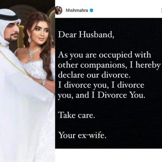 Sheikha Mahra, daughter of Dubai’s ruler Sheikh Mohammed bin Rashid Al Maktoum, has shocked the world by announcing her divorce from husband Sheikh Mana on Instagram.