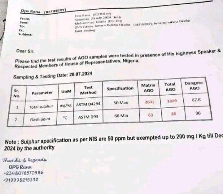 These findings have also prompted Dangote to invite independent testing to verify the quality of its diesel.